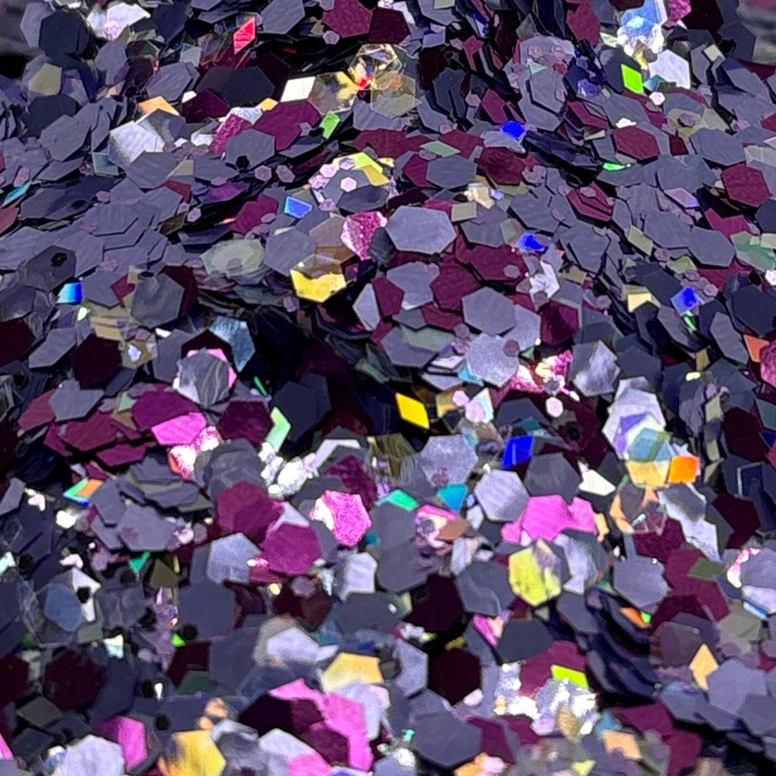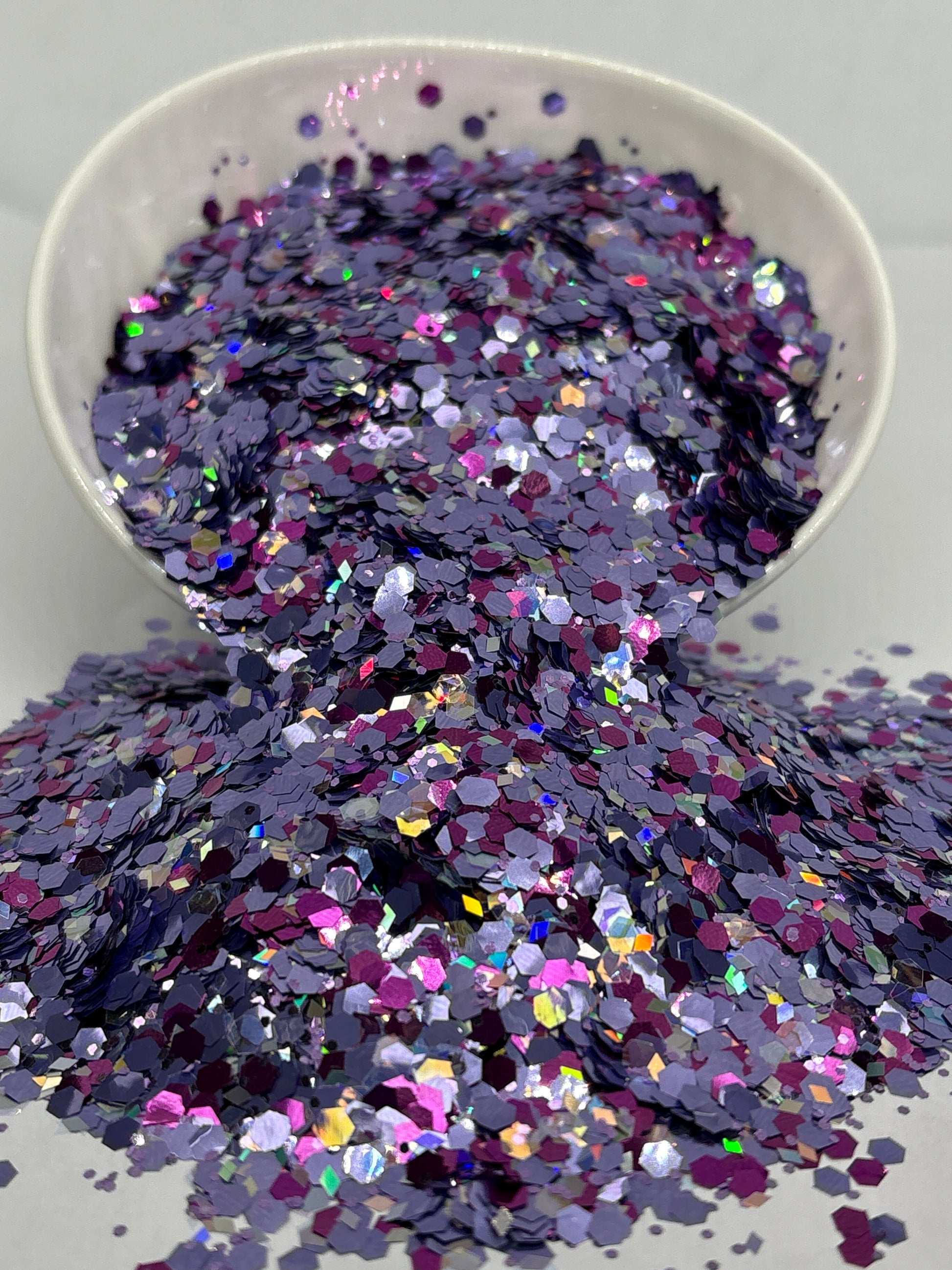 A dreamy custom blend of soft lavender and deep plum, kissed with subtle holographic sparkle for a magical, multidimensional finish. Perfect for adding a romantic yet bold touch to any project.