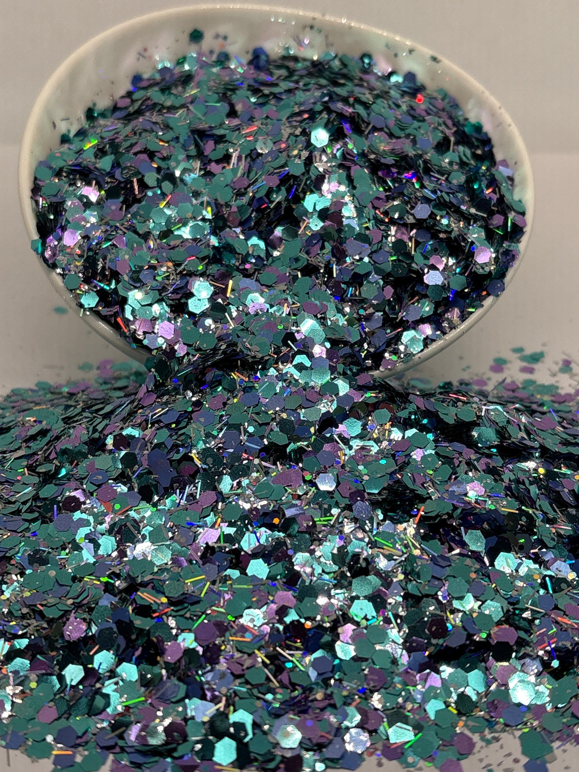Cowgirl Creek – Just like a hidden stream running through the wide-open range, this glitter sparkles with the calm blues of turquoise waters, the rich purples of wildflowers along the bank, and the silver shimmer of moonlight on the current. It’s a western beauty that flows with untamed sparkle, perfect for any cowgirl who carries a little shine wherever the trail takes her