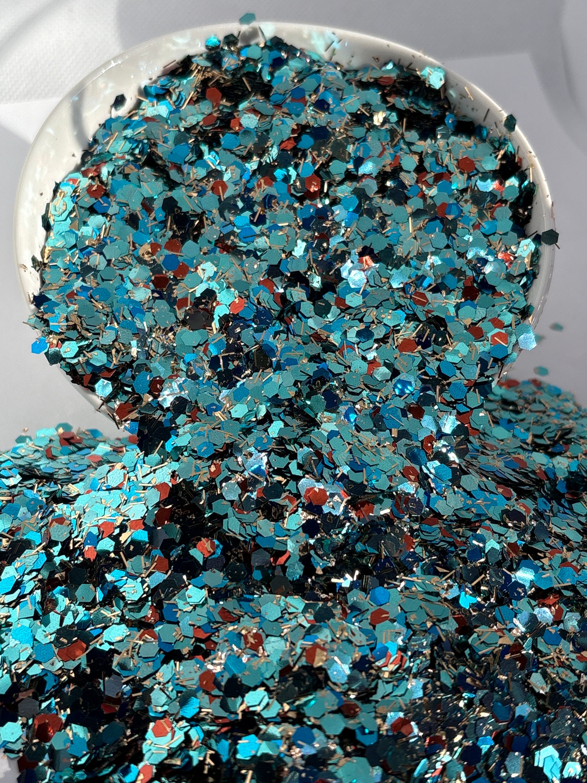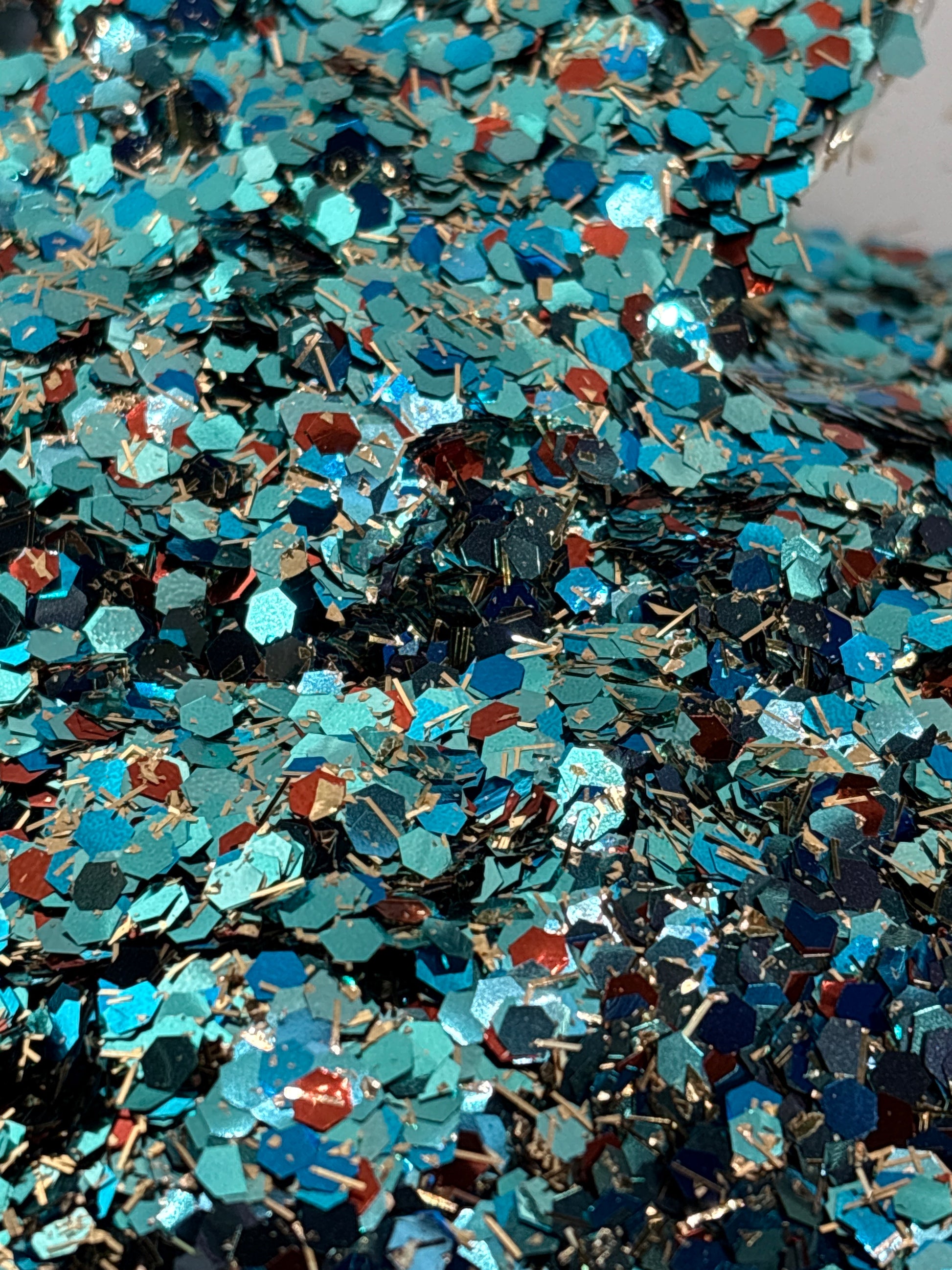 Cowgirl’s Keepsake – In collaboration with Marsha at Honey Sweet this glitter is like a treasured piece of turquoise jewelry passed down through generations, this glitter shines with the spirit of the West. Rich turquoise shimmers like desert skies, bronzed tones glow like worn leather and canyon stone, and golden sparks gleam like sunlight on a rodeo buckle. Timeless, tough, and full of charm—this keepsake is made to sparkle as bold as the cowgirl who wears it. ✨🌵🐎