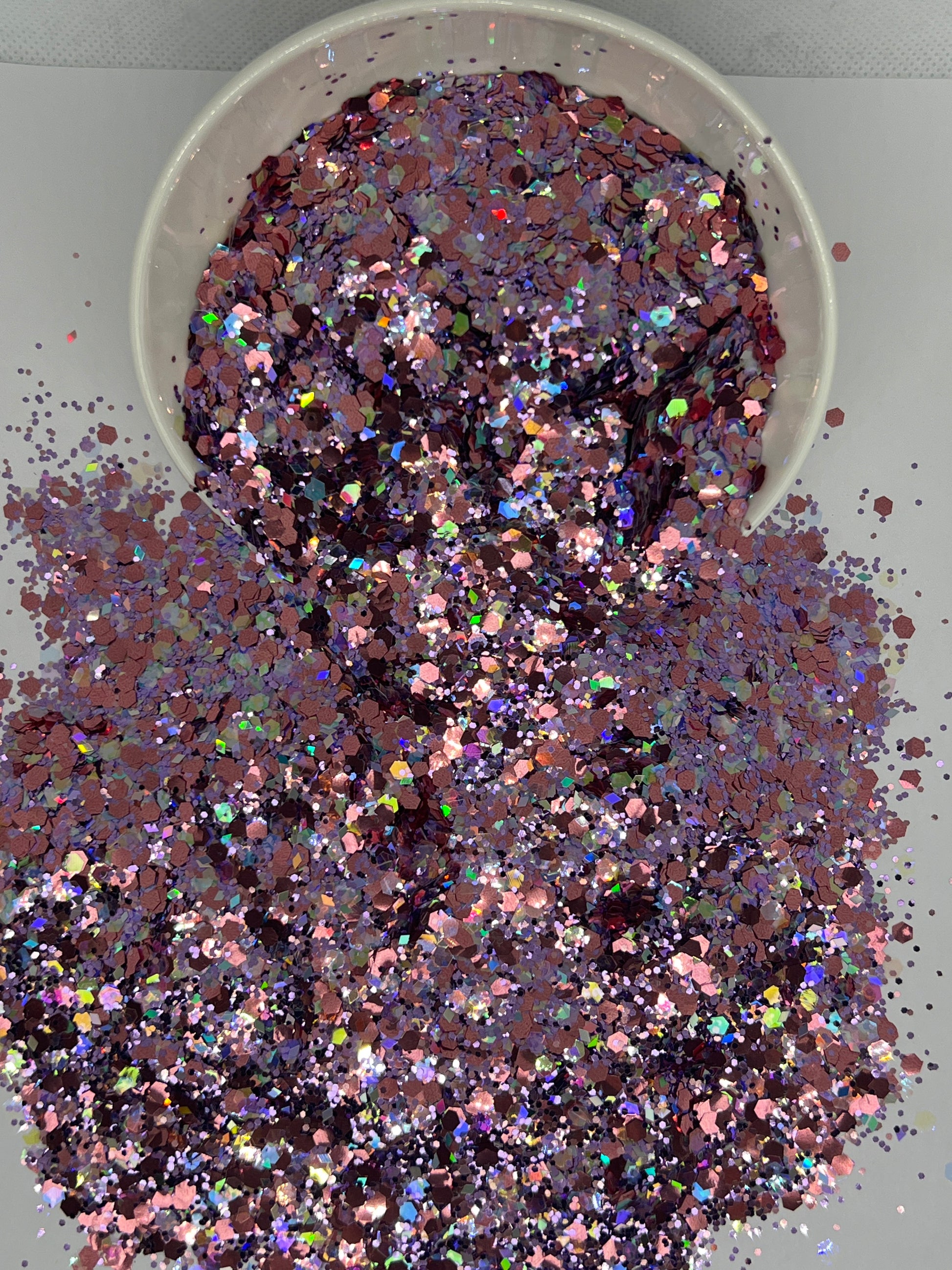 Everly Rose – A soft yet sparkling blend of pink, lilac, and silver that brings a romantic, whimsical touch to any project. Its subtle shimmer and pastel tones make it perfect for delicate designs or dreamy statement pieces.