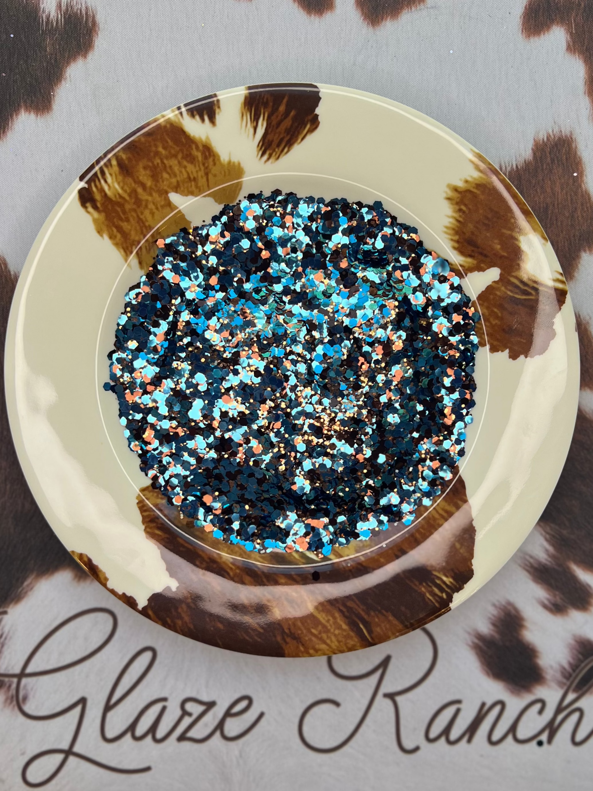 Inspired by the neon lights and dusty dance floors of an old-school Texas honky-tonk, Gilley’s blends warm copper, deep brown, and classic rodeo blue for a rich, retro sparkle. This custom mix brings that two-step spirit to tumblers, trays, and everything in between—with just the right amount of western soul.