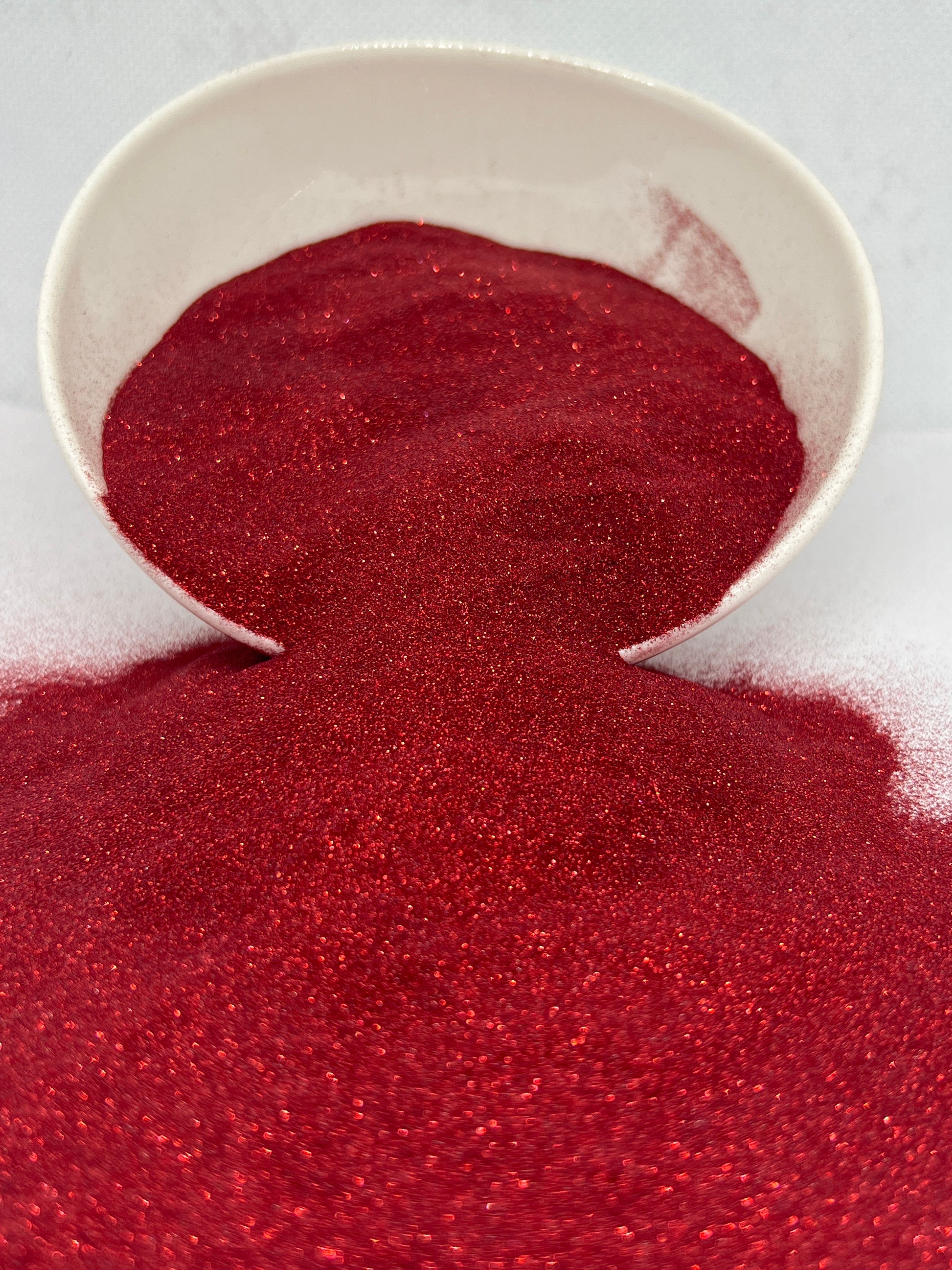 LET'R BUCK is a red loose glitter available in 4 different cuts. Perfect for crafting, tumblers, resin art, and more.
