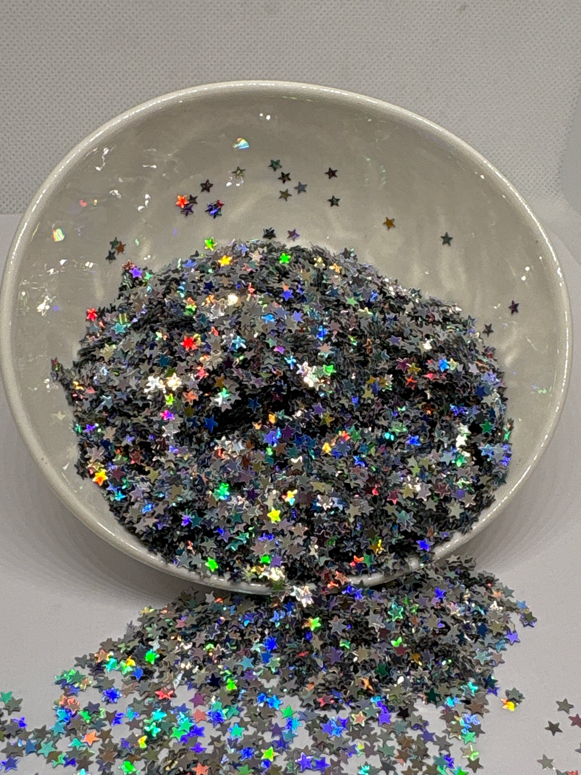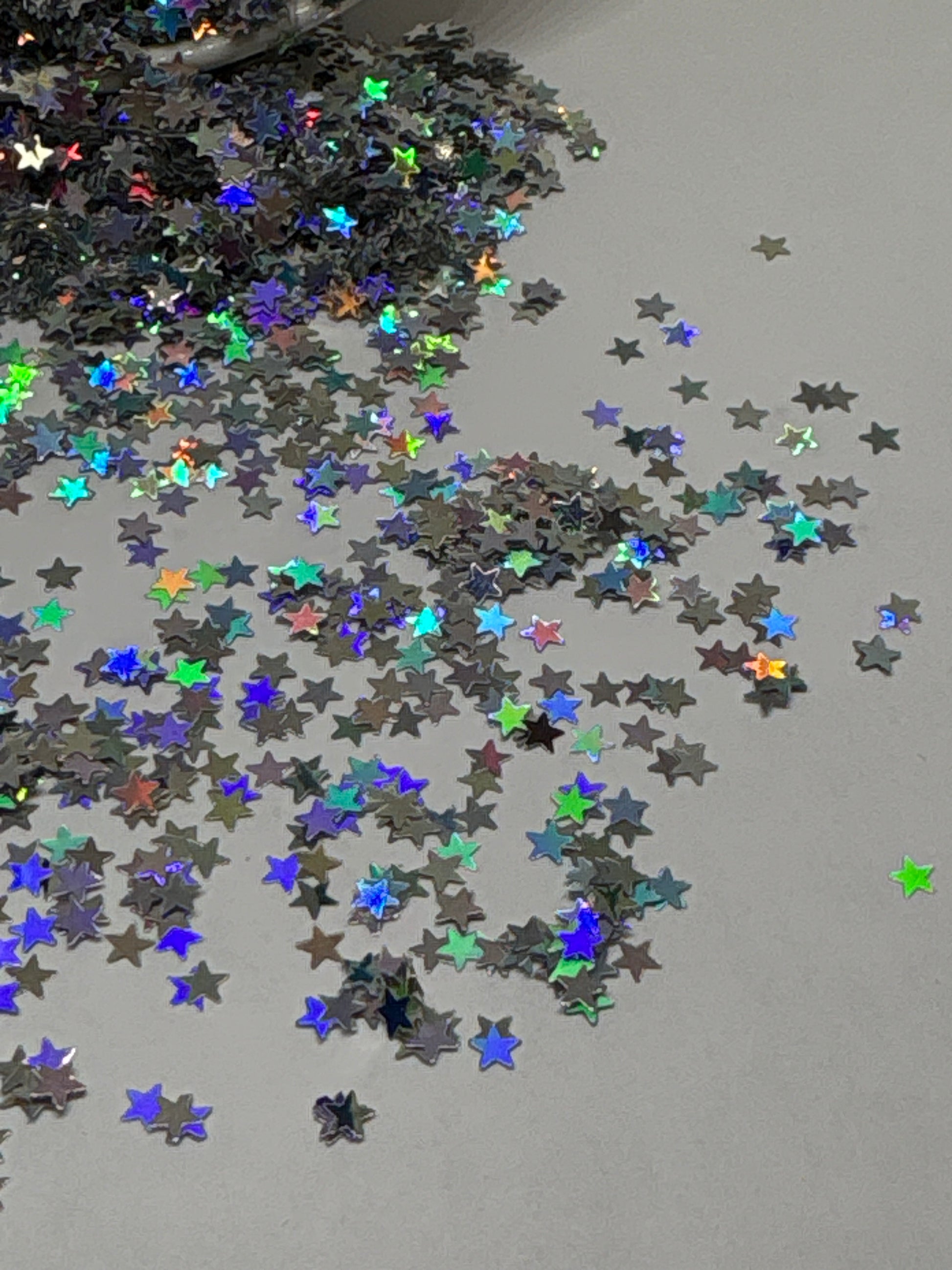 Blazing bright like the Texas night sky, this star-shaped glitter shines in holographic silver, scattering rainbows with every flicker of light. Lonestar captures the spirit of the open range and the pride of the Lone Star State—bold, brilliant, and unforgettable. Perfect for adding a celestial Western twang to any craft, it’ll have your projects sparkling like a rodeo under the stars. ⭐🤠✨