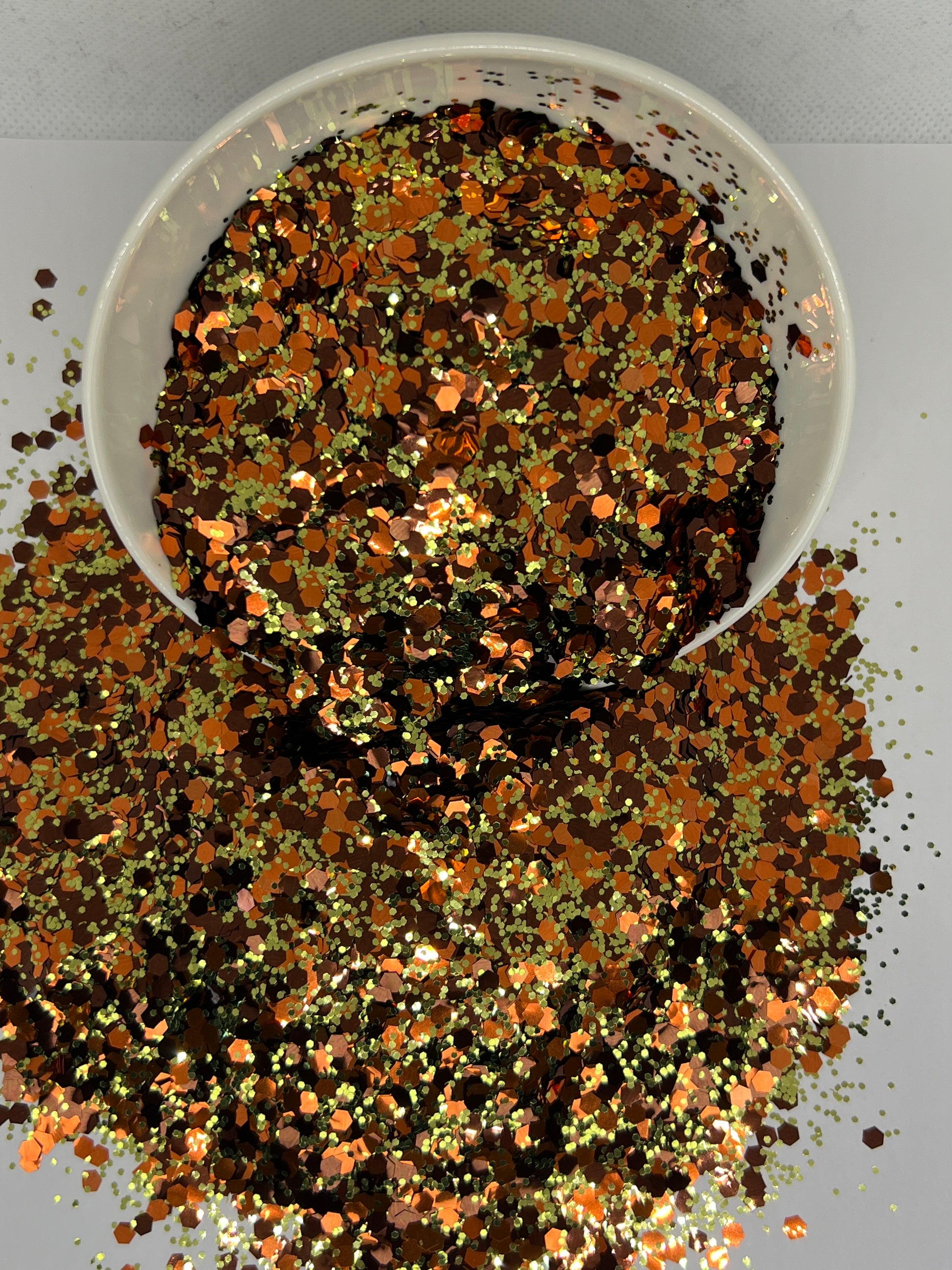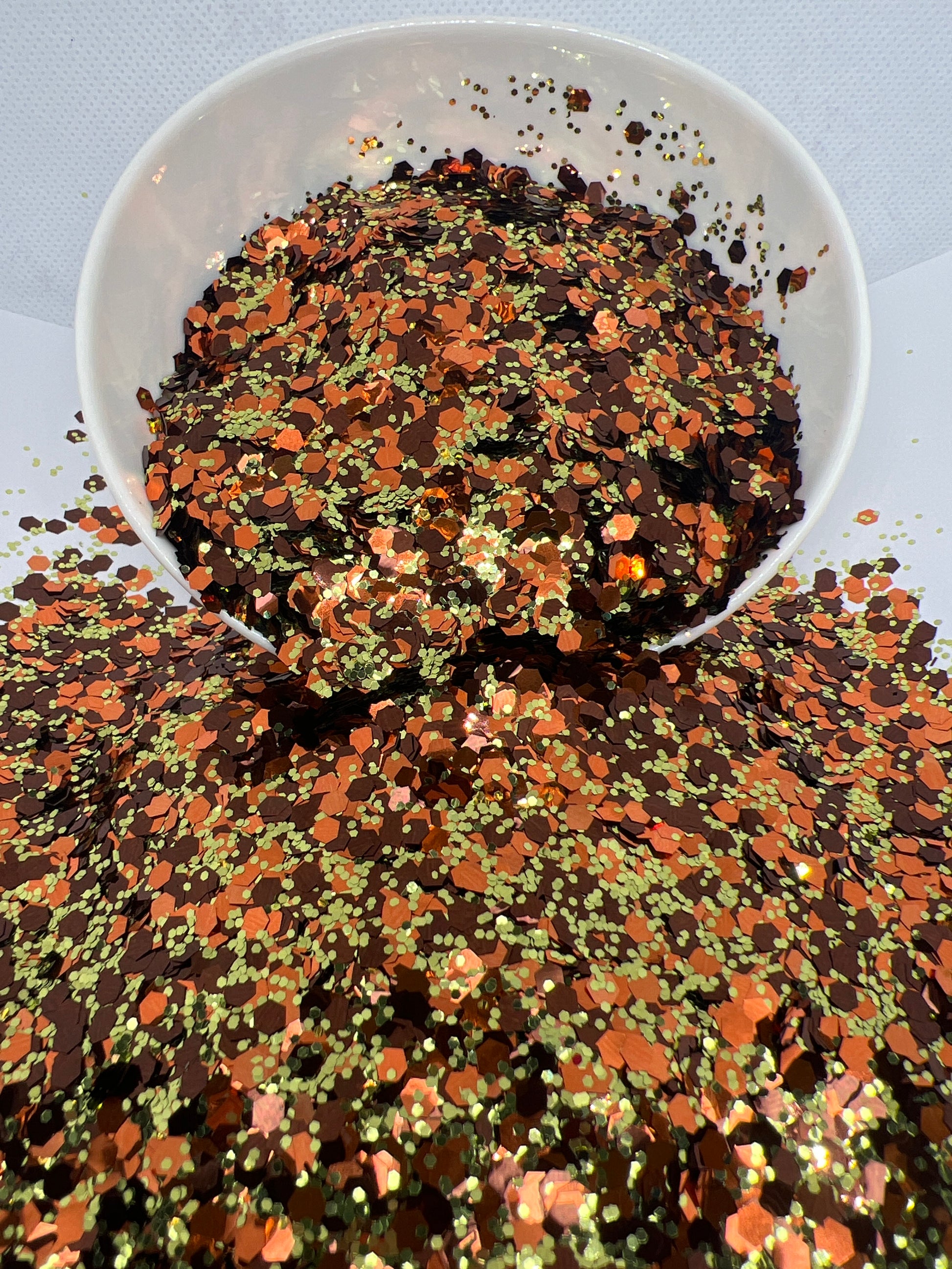 Longhorn Glitz – A rich, earthy blend of burnt orange, warm bronze, and deep brown tones inspired by the Texas Longhorn. This mix brings a rustic yet dazzling sparkle to your creations, perfect for autumn projects, western themes, and bold statement designs.