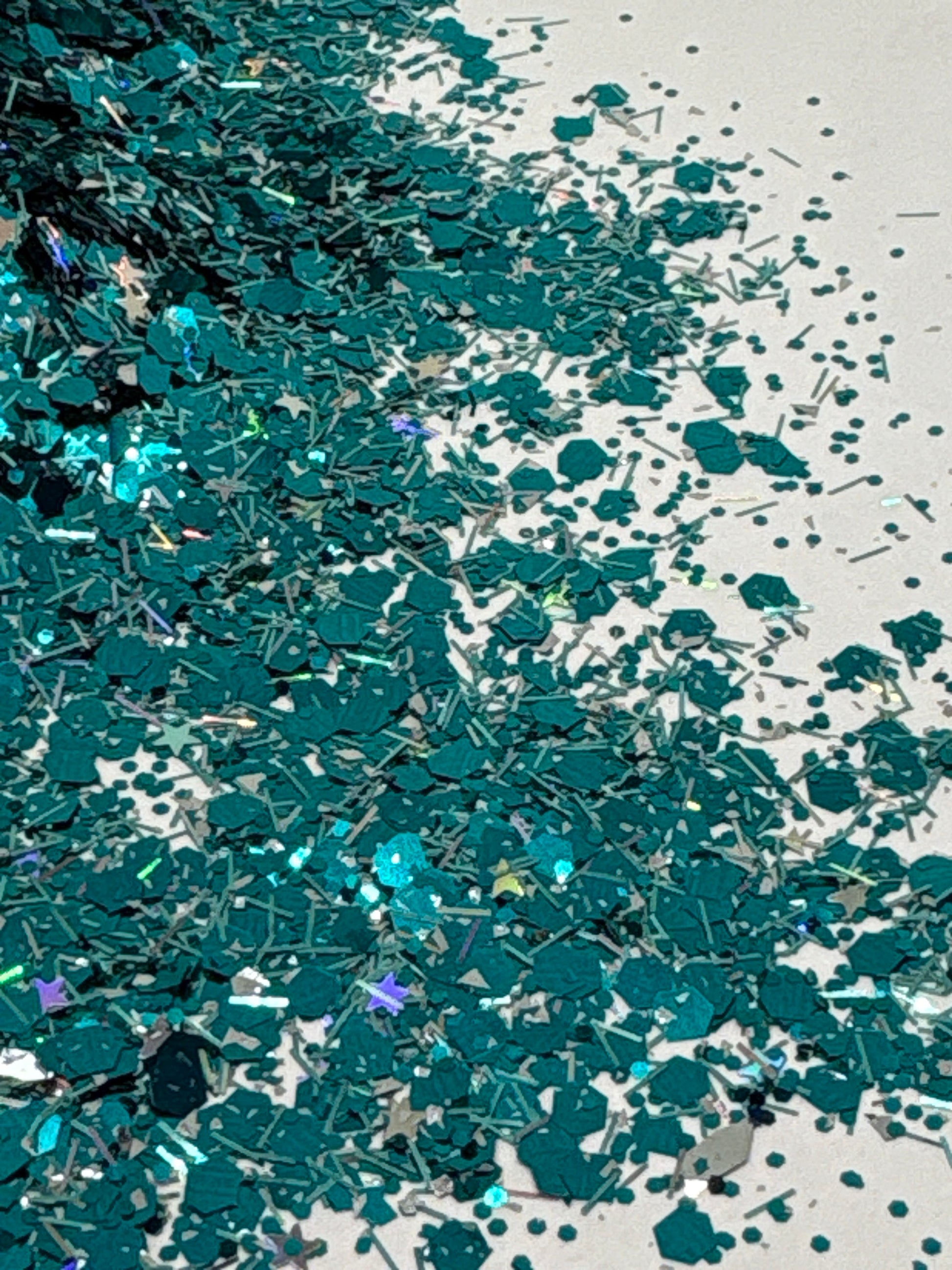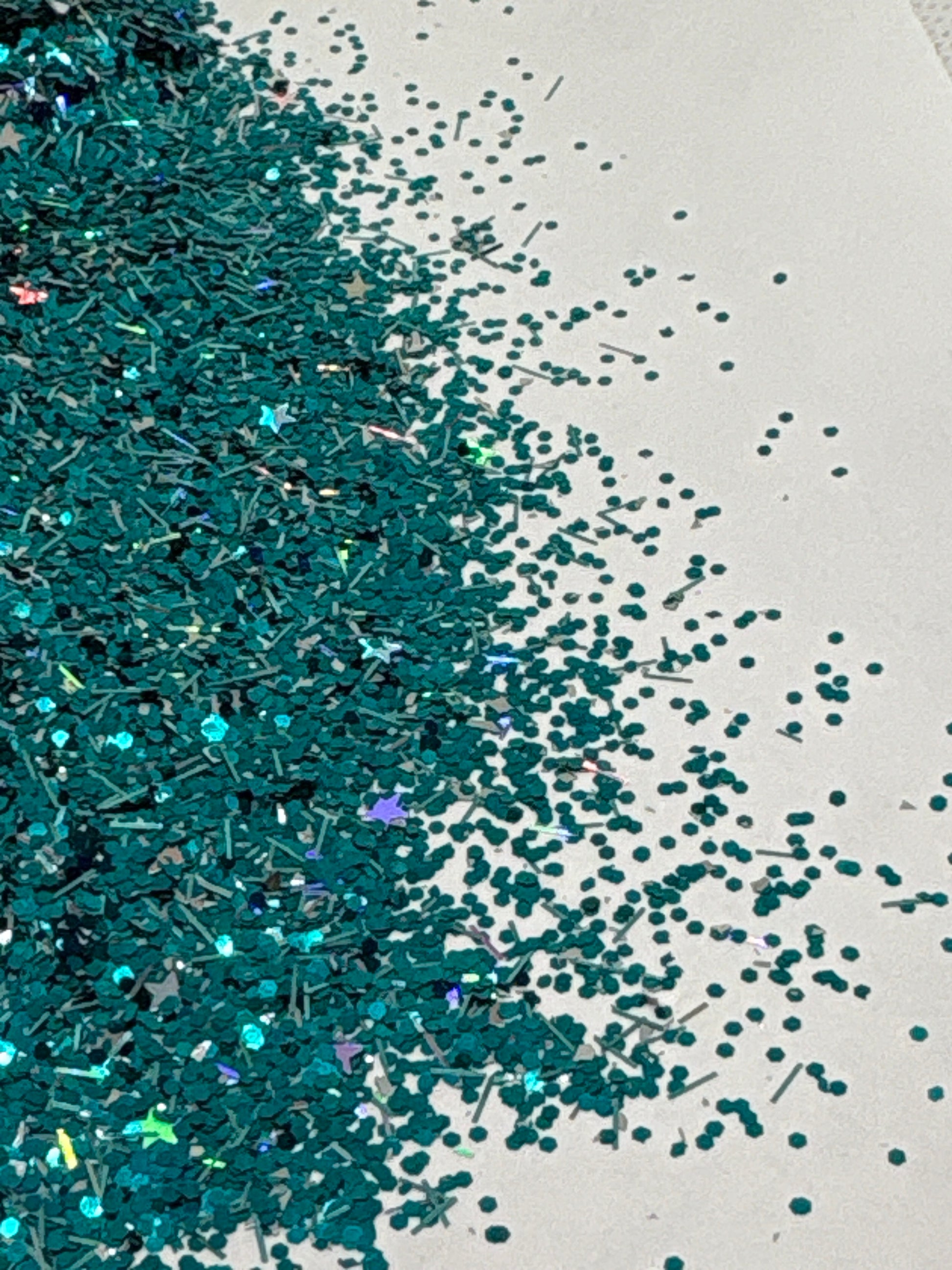 Shining brighter than a rodeo night sky, Oh My Stars mixes a rich, deep turquoise base with holographic silver stars and bold confetti sparkle. Every shake bursts with twinkles that look like a blanket of stars stretched wide across the frontier. Daring, dazzling, and full of wonder—this glitter brings the magic of the open range straight to your craft table.