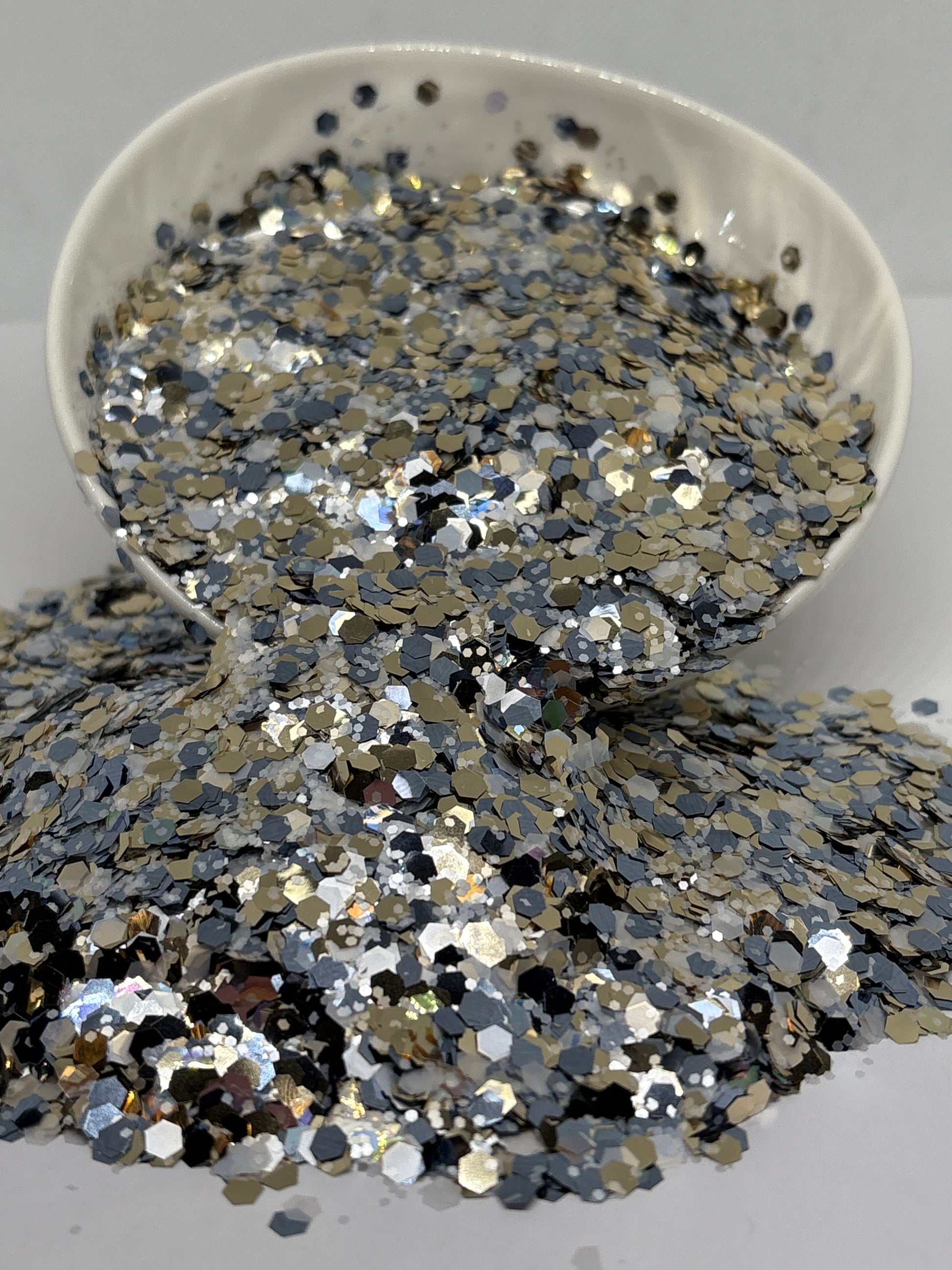 Like stardust kicked up from a cowboy’s boot at high noon, this glitter’s a showdown of shimmer. Gold flashes like sun off a six-shooter, blue twinkles deep as a desert night sky, and white glows pure as prairie snow. It’s soft, yet bold, and ready to shine from the saloon to the saddle.