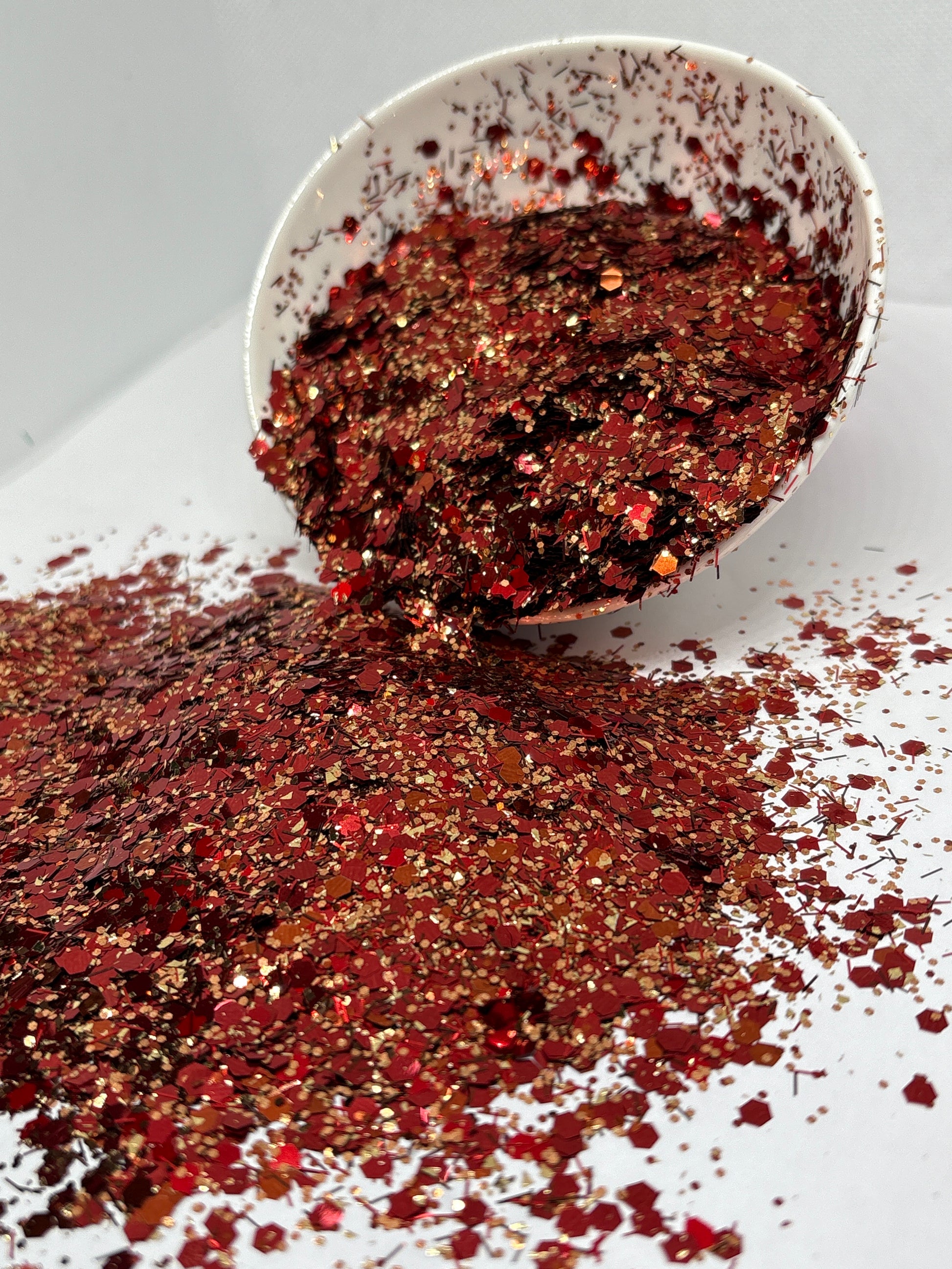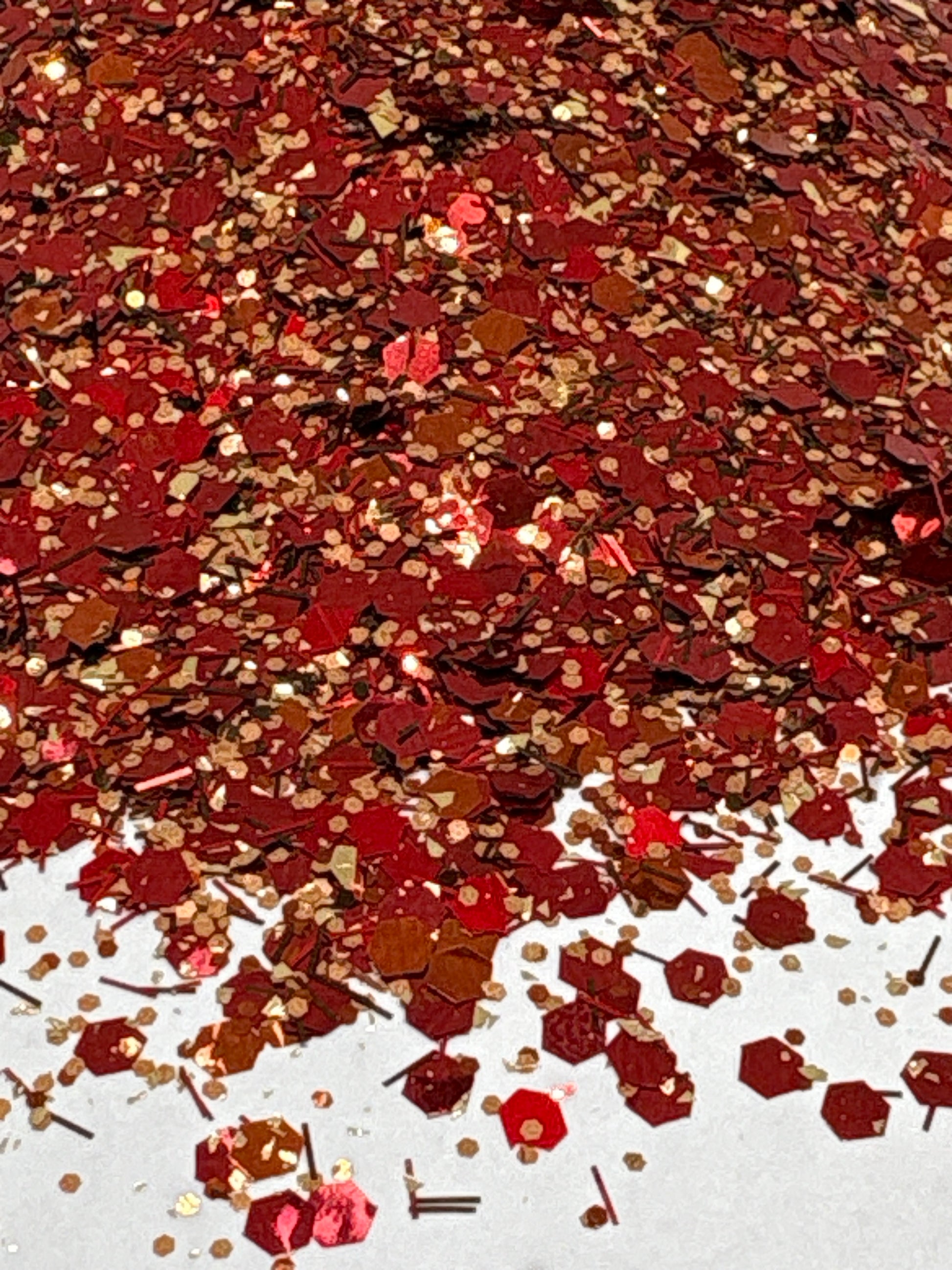 Raging Bull – A fierce deep red glitter mix that charges through your projects with unstoppable energy. Its fiery tones shimmer like rodeo dust under the arena lights, bold and unyielding. Just like the legendary bull in the chute, this mix demands attention and adds a fearless kick of Western spirit to any craft.