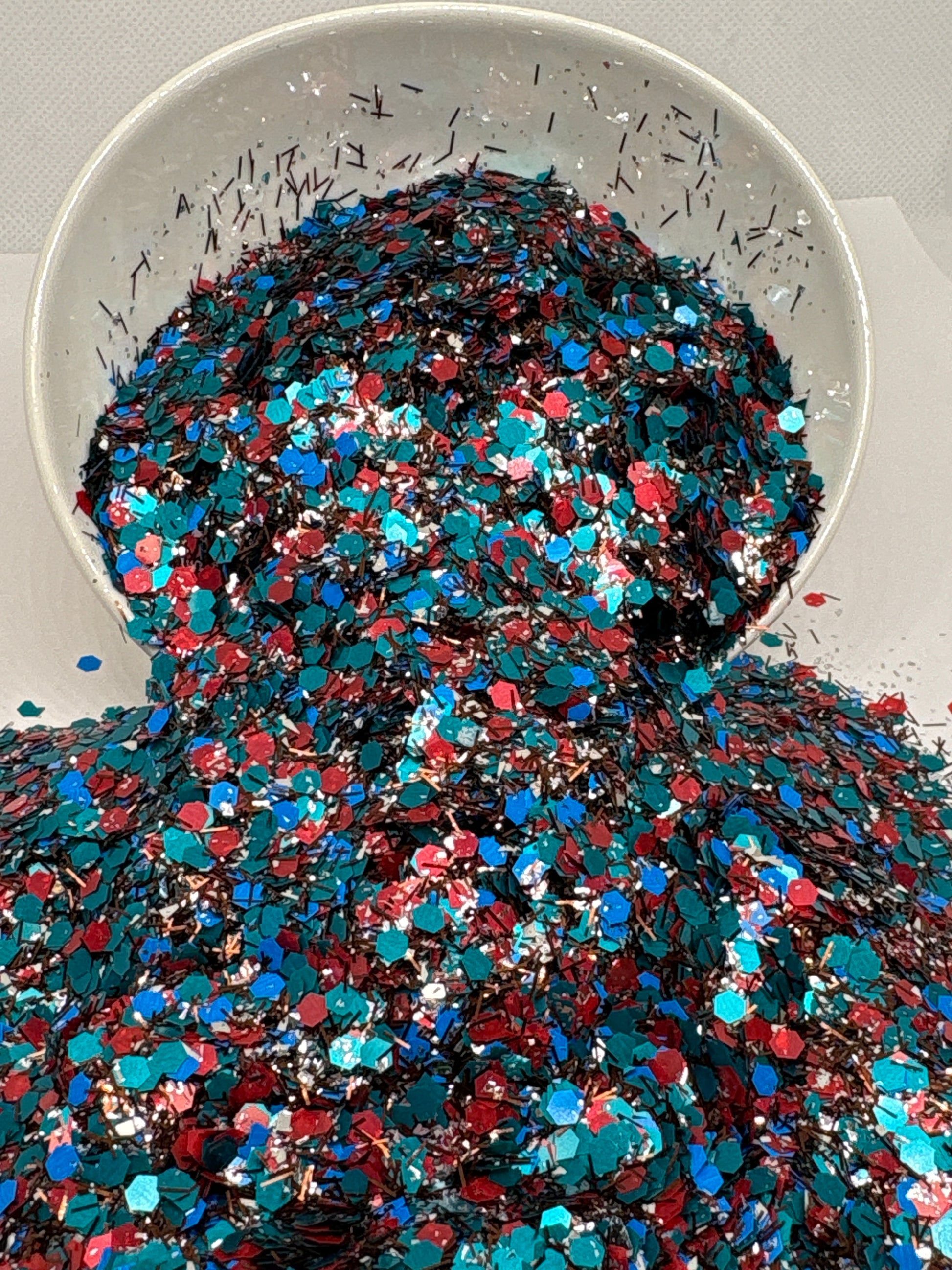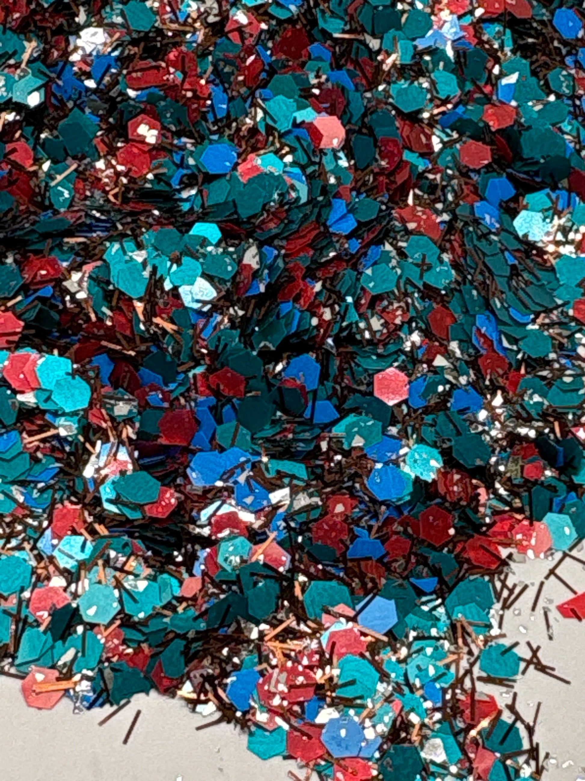 🎪 Rodeo Clown is a lively glitter mix that knows how to steal the show. Bursting with bold turquoise and playful coral, grounded by rich ranch-brown and a flash of shimmering silver, this blend dances under the lights just like the rodeo arena’s funniest hero. It’s equal parts humor and heart, designed to sparkle through tumbler art, resin pours, or any craft that needs a fearless splash of color. Just like the clown who keeps the crowd laughing and the cowboy safe, this glitter promises unforgettable character and shine.