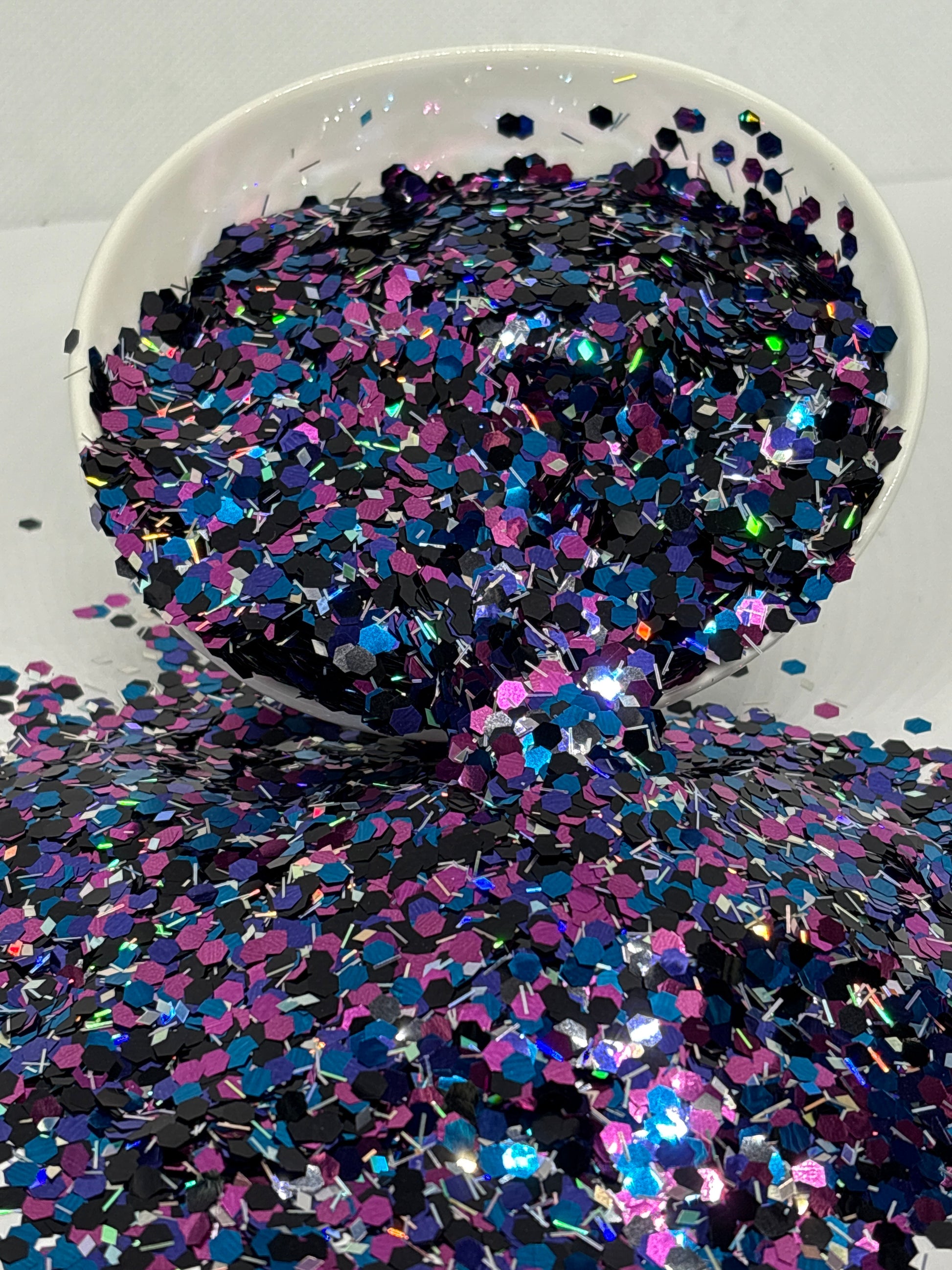 Space Cowboy — Saddle up for a ride where the Wild West meets the wild unknown. This cosmic blend of stardust silver, meteor purples, and deep midnight blue shines brighter than a lasso full of shooting stars. It’s for the cowgirl who can two-step under the saloon lights and rope the moon in the same night. Bold, fearless, and just a little out of this world