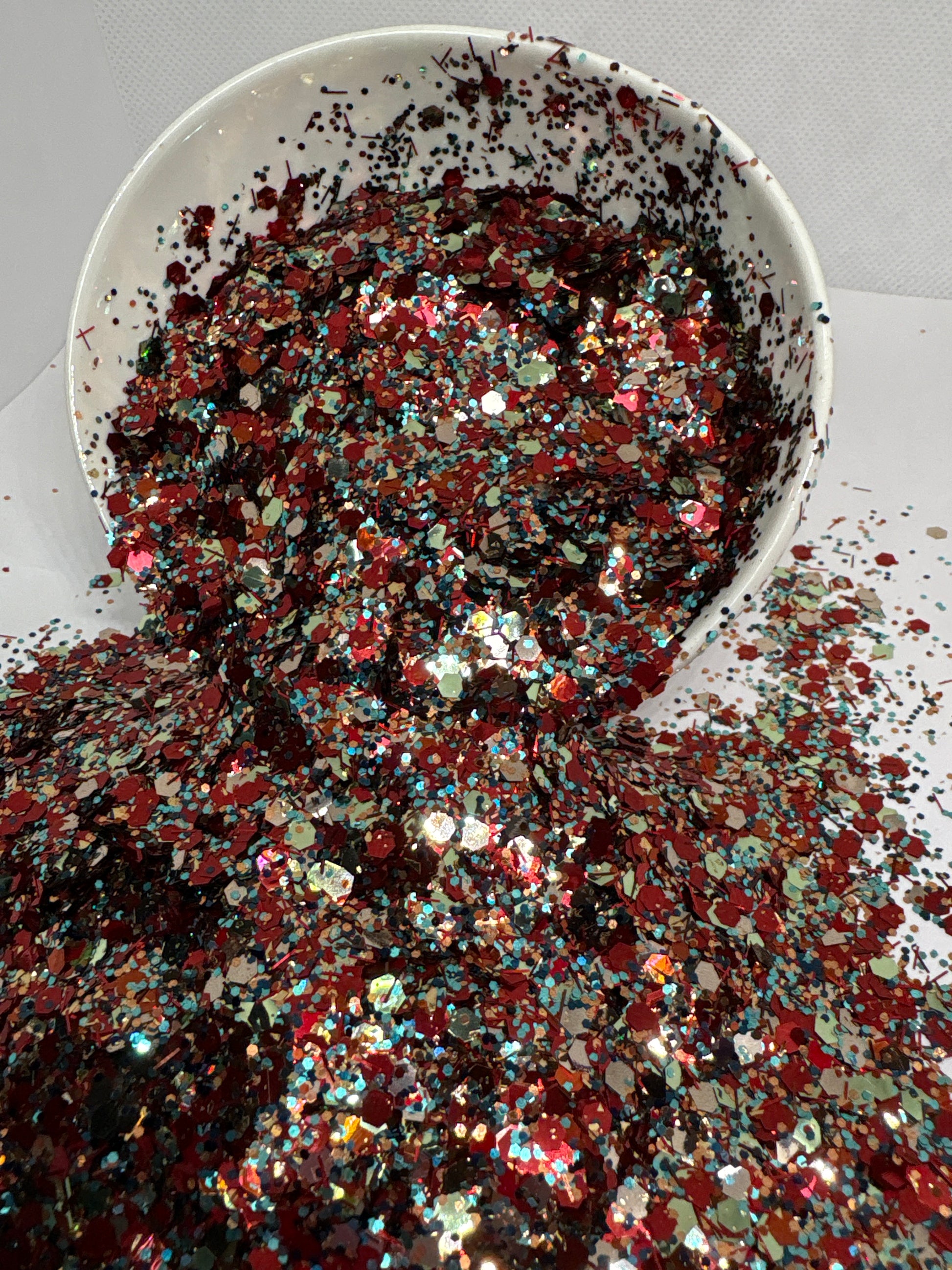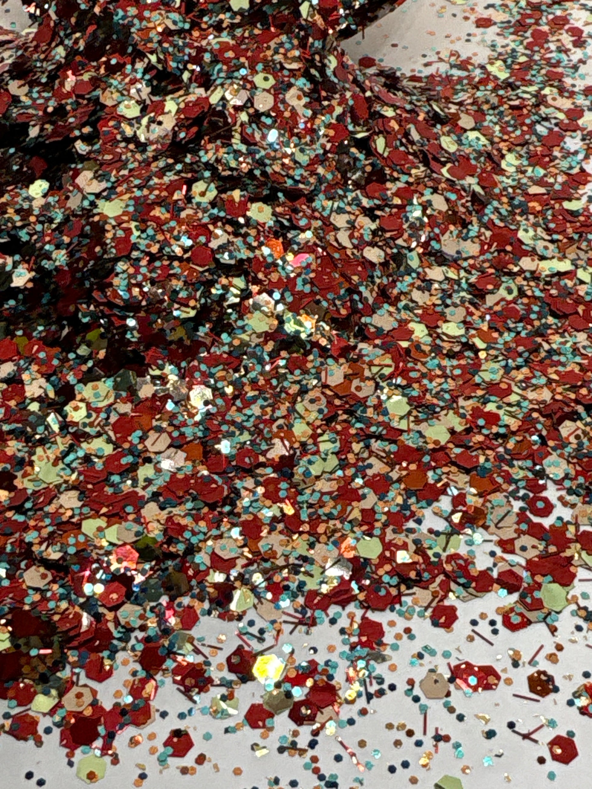 The Old Red Barn – This glitter glows with the soul of generations, weathered but beautiful—just like the patina on old barn wood. Its deep crimson and rusty red mingle with warm copper and bronze, giving the look of sun-faded boards that have seen countless seasons. It carries the spirit of Grandpa’s steady hands mending fence and Grandma’s laughter floating through the ranch yard. A timeless mix, full of heritage and heart, ready to add a touch of rustic patina to your creations.