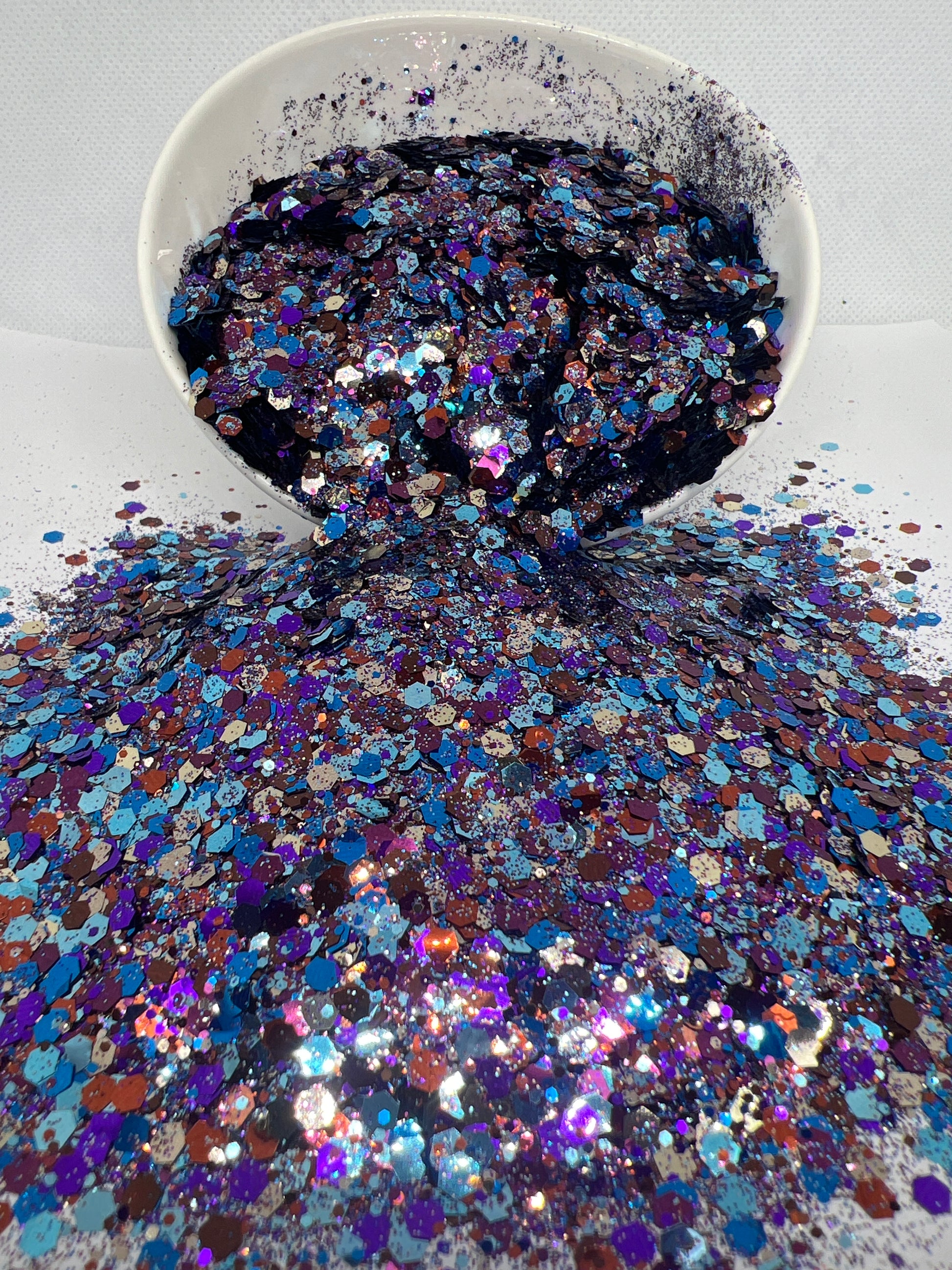 A bold collaboration between Glaze Ranch Glitter and our brand ambassador, Sippity Doo Dah Designz. This rich mix pairs deep plums and turquoise with flashes of copper, bronze, and red, finished with shimmering holographic accents. Perfect for western-inspired designs, statement tumblers, and projects that deserve a little extra sparkle with a whole lot of personality.