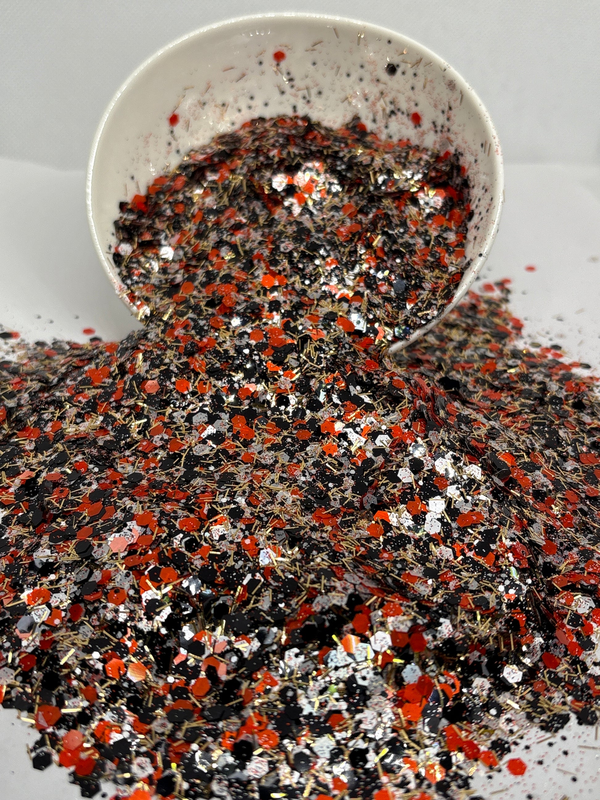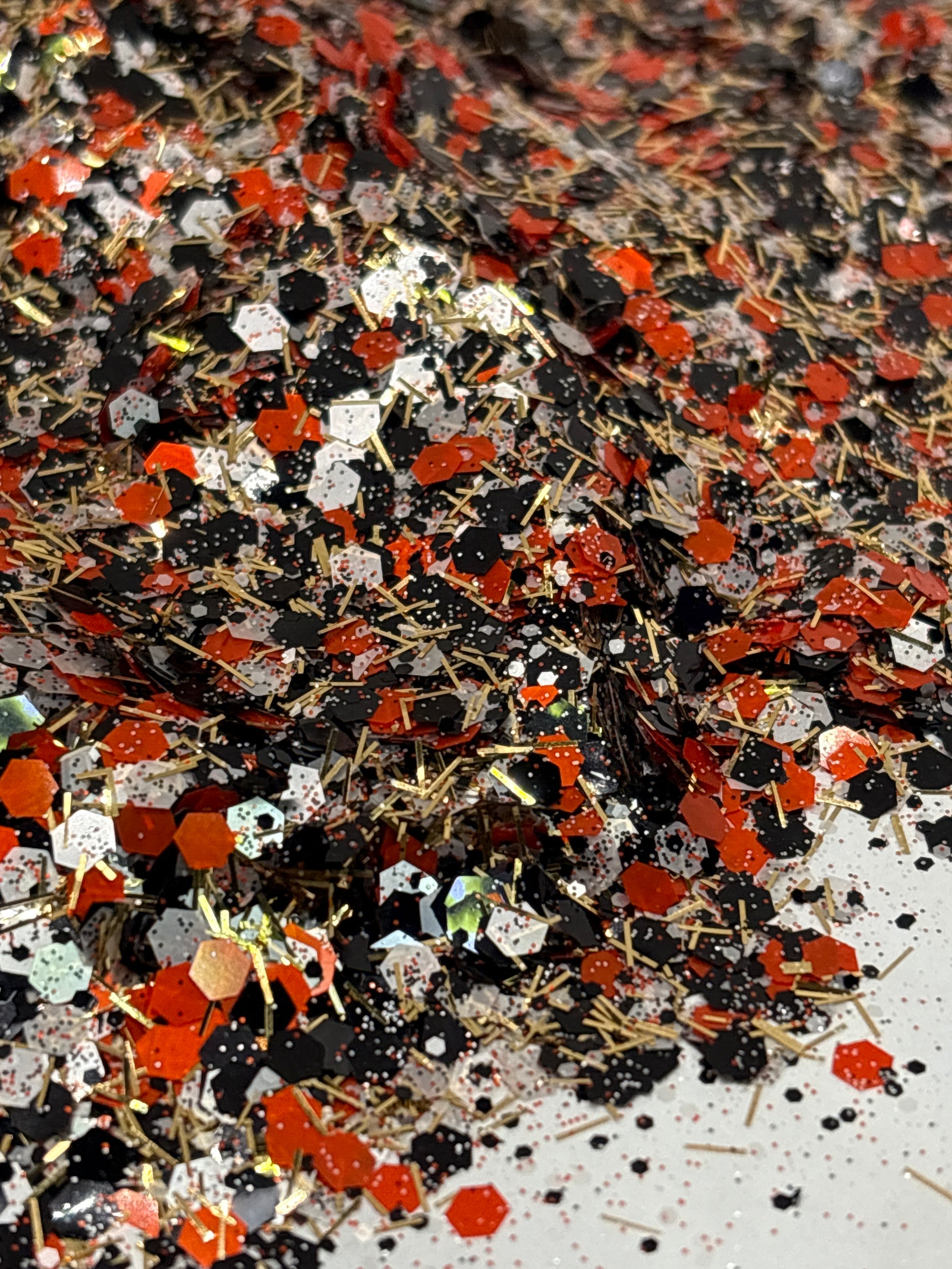 As bold and unpredictable as 8 seconds on the back of a bronc, Wild Rodeo bursts with fiery orange, rugged black, crisp white, and flashes of gold tinsel. This mix mirrors the dust, the lights, and the wild energy of the arena—where every ride tells a story of grit and glory. With its striking color blend and metallic sparkle, Wild Rodeo is perfect for crafters ready to rope in a glitter that’s daring, dynamic, and pure Western showtime!